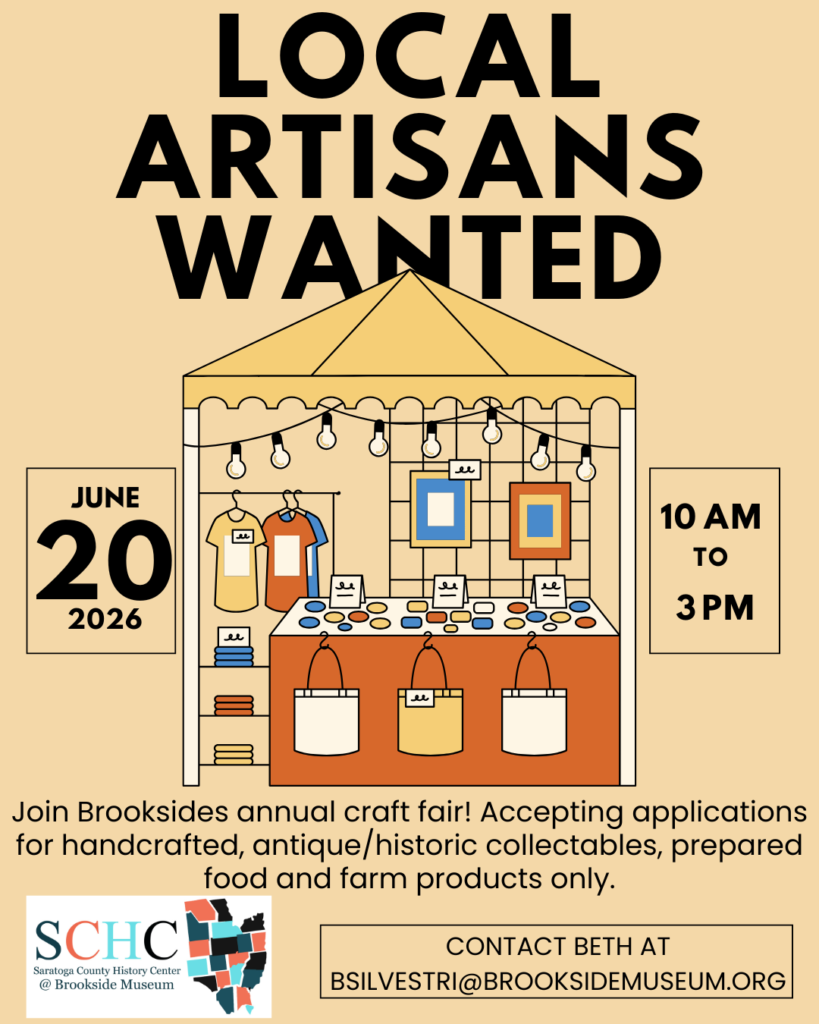 The Saratoga County History Center is seeking vendors of handmade crafts, antiques and farm products for the annual craft fair on Saturday, June 20, 2026 from 10am to 3pm. No mass-produced or commercially-made items will be permitted. Spaces are available outdoors, with limited spaces available indoors. This is a rain or shine event.