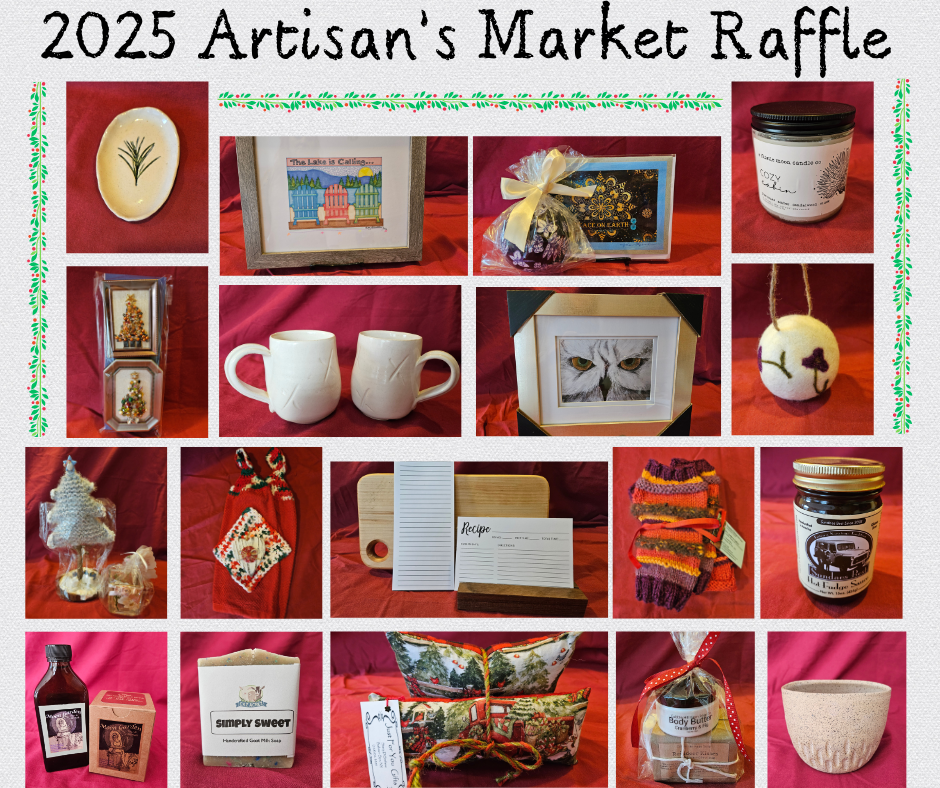 Many of this years artisan’s have generously donated items to the raffle to benefit Brookside! Single raffle ticket are $2 or get 6 raffle tickets for $10. Winner will be drawn and contact on December 21, 2025. This years raffle winner will win all of the items listed below, worth over $545! Tickets can be purchased in the gift shop.